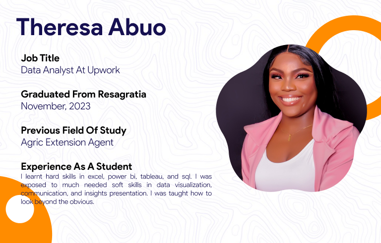 I registered for the bootcamp, eager to broaden my knowledge. The first couple of weeks were intense, as I had to juggle my personal commitments in school with the coursework. However, the elaborate and well-detailed syllabus provided by Resagratia made it easier to follow up and stay on track. The structured approach and comprehensive materials were instrumental in helping me grasp the core concepts of data analytics.