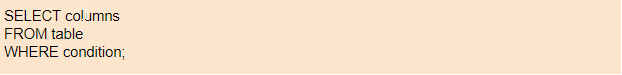 In most cases, we won’t want to select all the records in a table, but we will want to retrieve particular records that meet some condition. In these cases, we will need to use a WHERE clause.