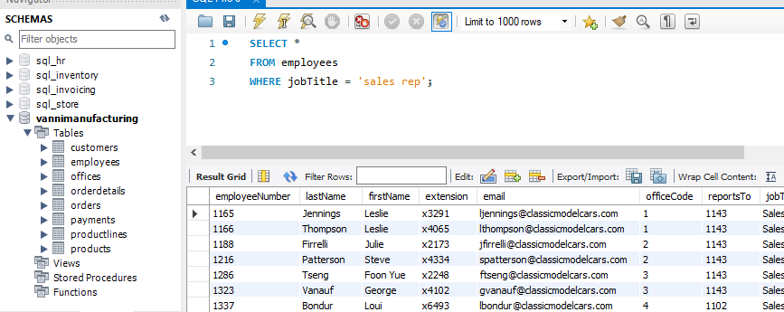 We will be using Vanni Manufacturing Company’s database for this article to showcase examples of how to use basic SQL statements and clauses.