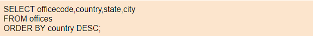 We noted that the city column was sorted in ascending order, though we did not specify the preferred hierarchy, MySQL sorted it by its default setting which is the ascending order (ASC).