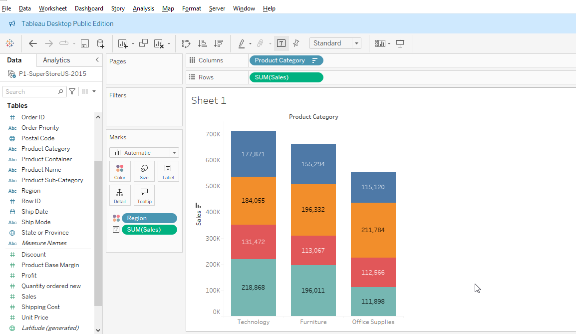 Let’s say you have a dataset with Sales and Product Categories. Here’s how to make a simple bar chart: