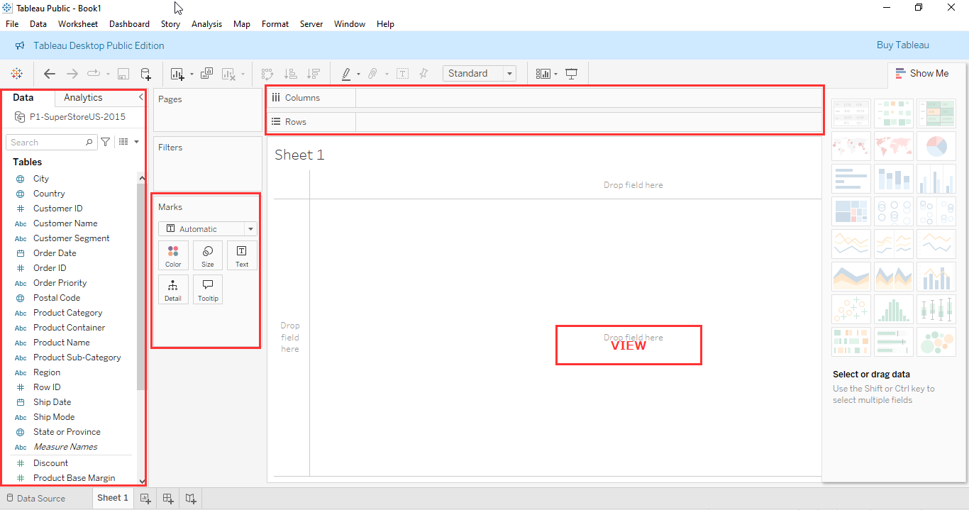 Tableau is super intuitive because of its drag-and-drop functionality. You don’t need to write code—just drag fields and drop them onto shelves.