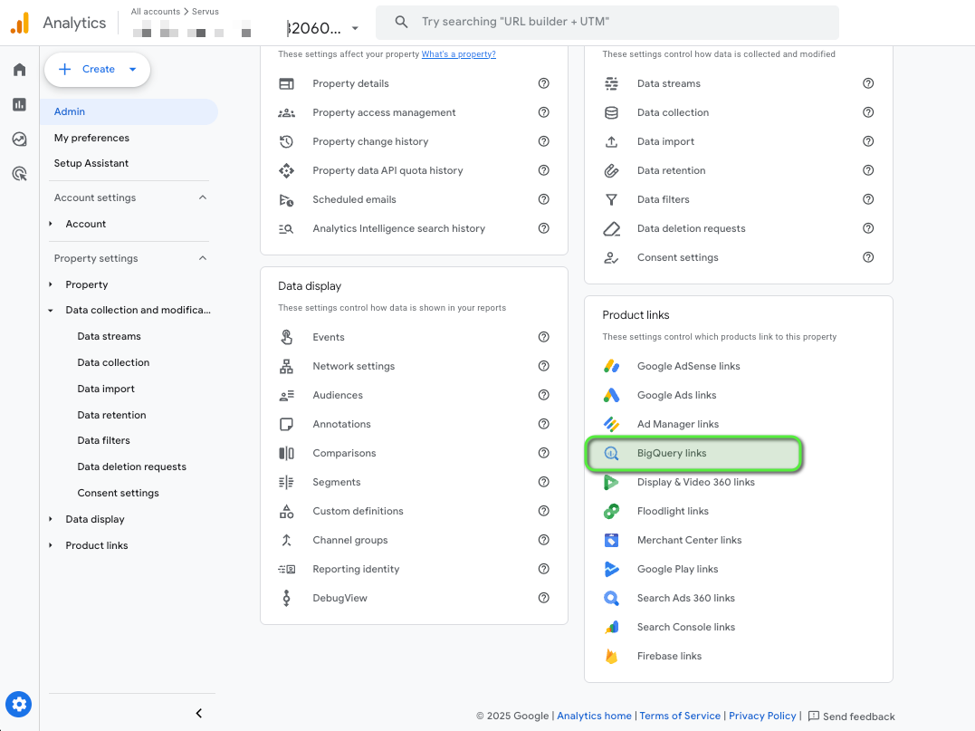 [Snapshot of BigQuery Export Link from Google Analytics 4]
