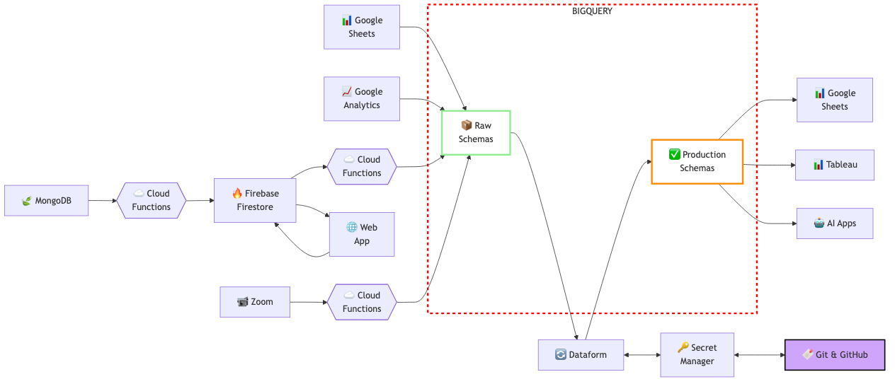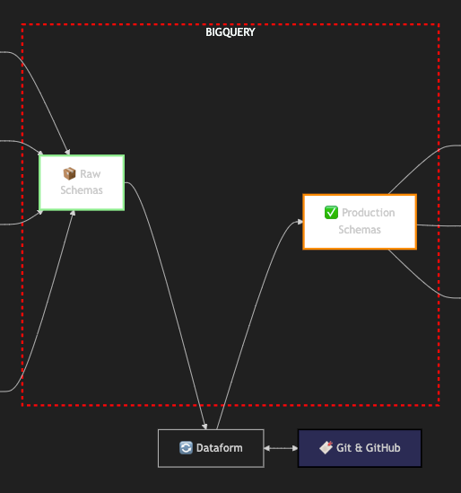 [Snapshot of the BigQuery & Dataform section of the data architecture design]