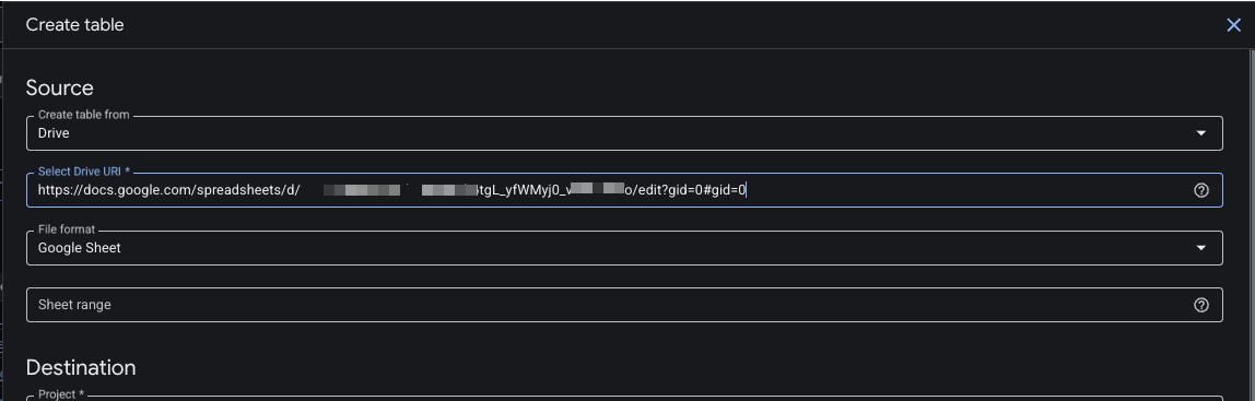 Integrating Google Sheets into BigQuery is also straightforward because Google built this into the Create table interface. It's almost like every use case was well thought of.