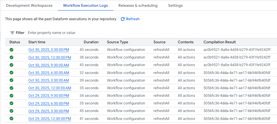 In terms of cost, according to Google, the Dataform service is free. This means that the bulk of the cost go to storage, querying, and workflow orchestration. For our use case, this is currently under $40 per month but it's variable based on the criteria shared earlier. It was under $10 - $15 in the early, good days.