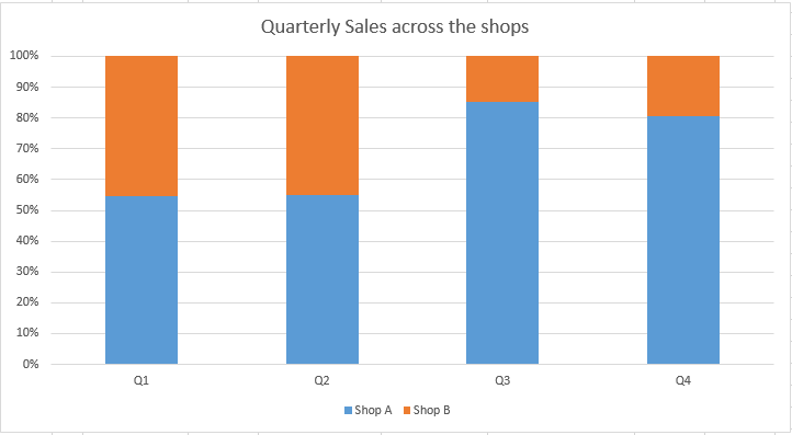The following are the steps to insert a 100% Stacked chart: