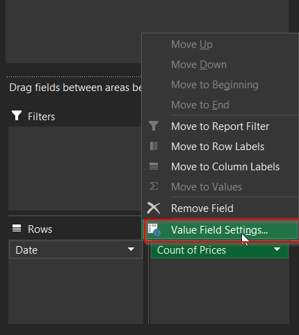 Pivot table fields panel