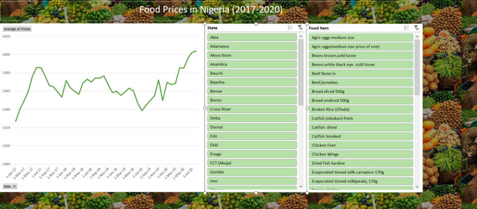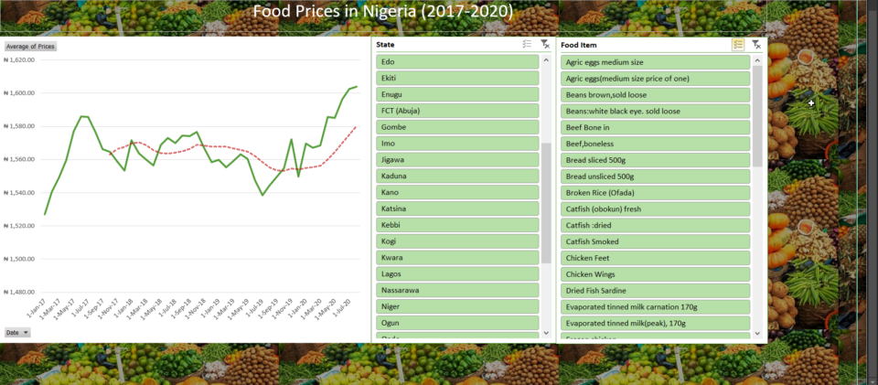 Due to the continuous surge of the mind-boggling rise of prices of food in Nigeria, I decided to analyze trends and identify the trajectory of selected food prices across the country from the year 2017 to 2020.