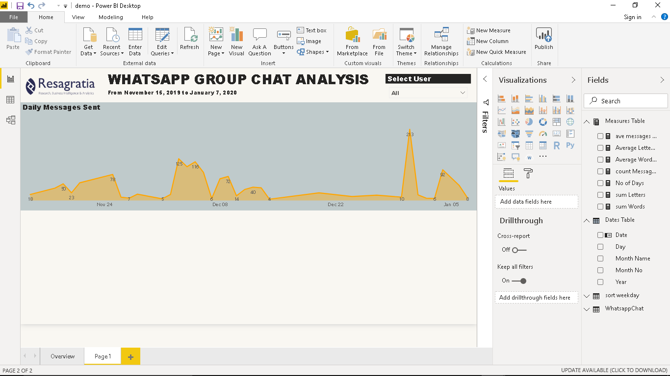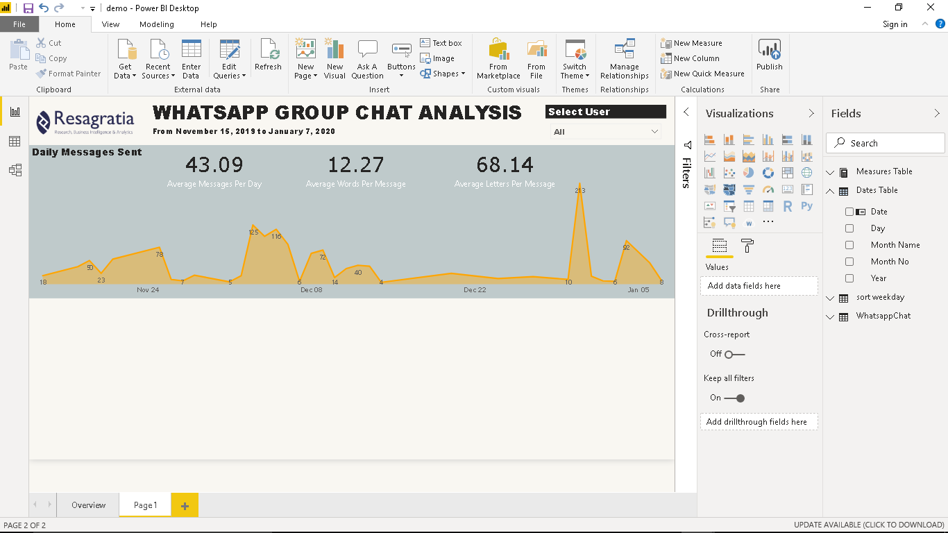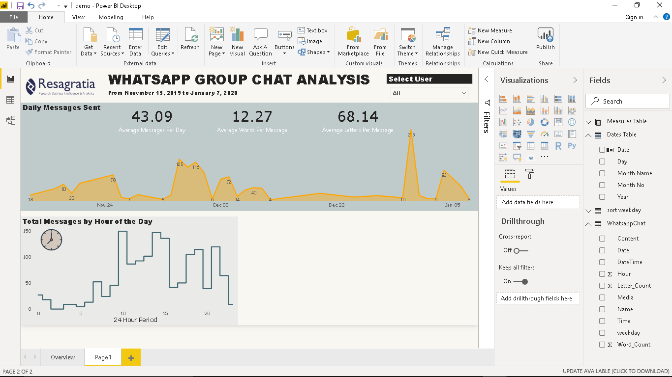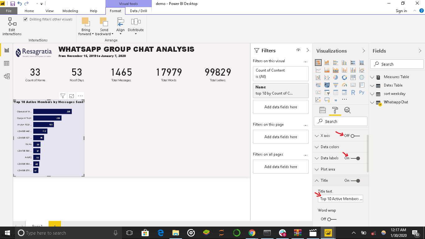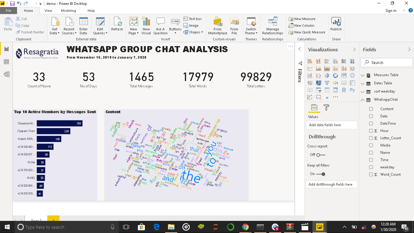 Having completed this tutorial, you have gained amazing skills in extracting Whatsapp text data, cleaning and transforming this data to CSV format using Python and creating awesome visuals in Power BI.