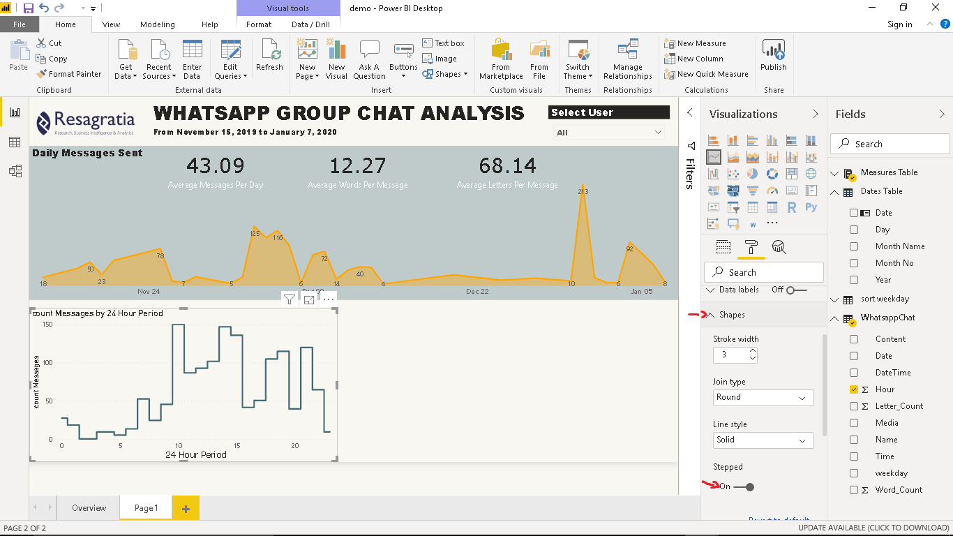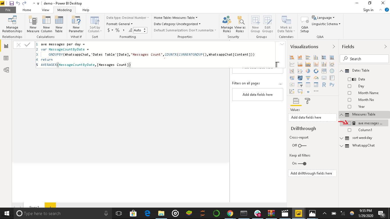 Average Letters Per Message = AVERAGE(WhatsappChat[Letter_Count])