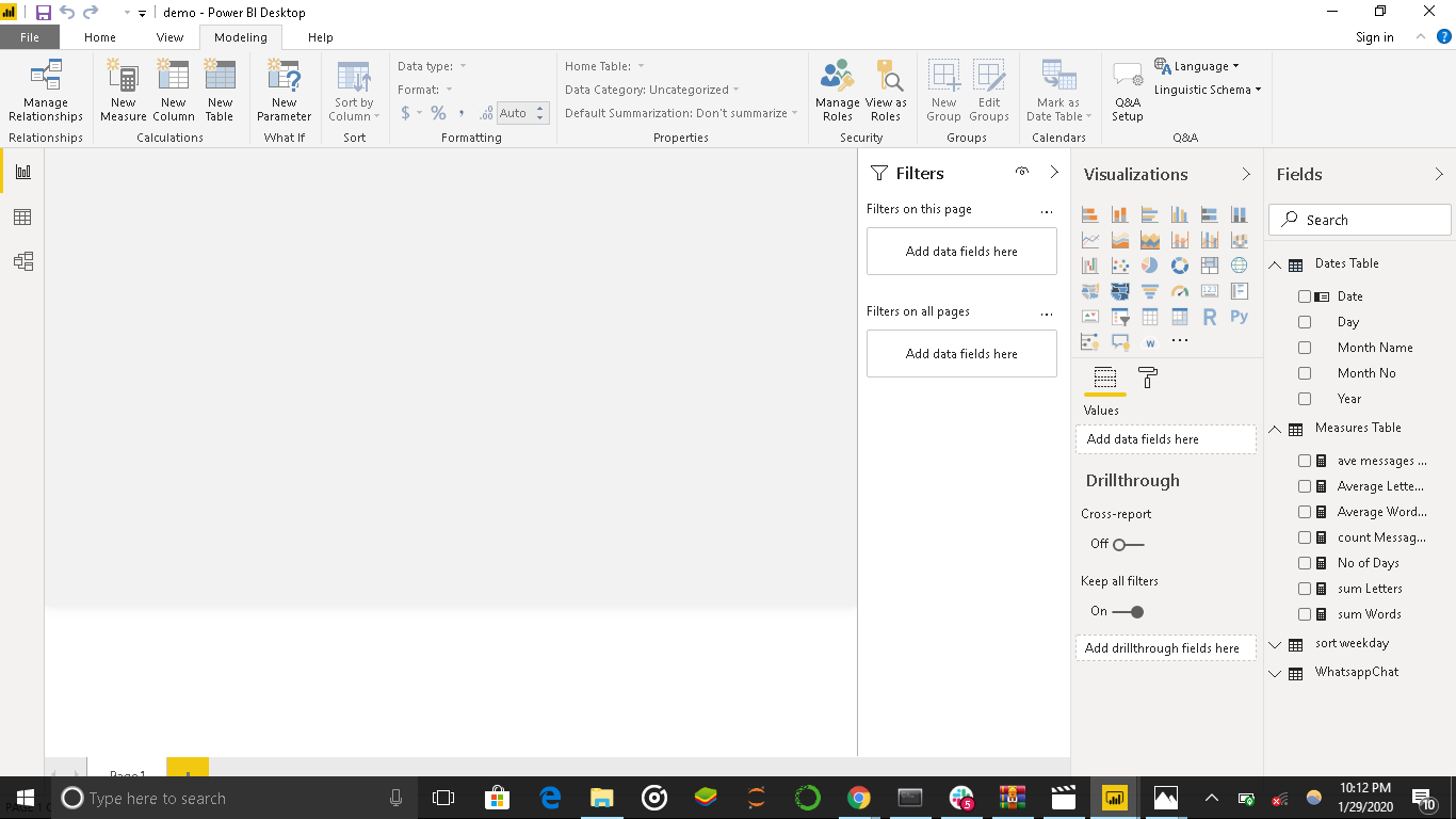This takes us to our report page. We will create a Date Table and Measures Table to help us create our visuals seamlessly and add more dimensions to our visualization.