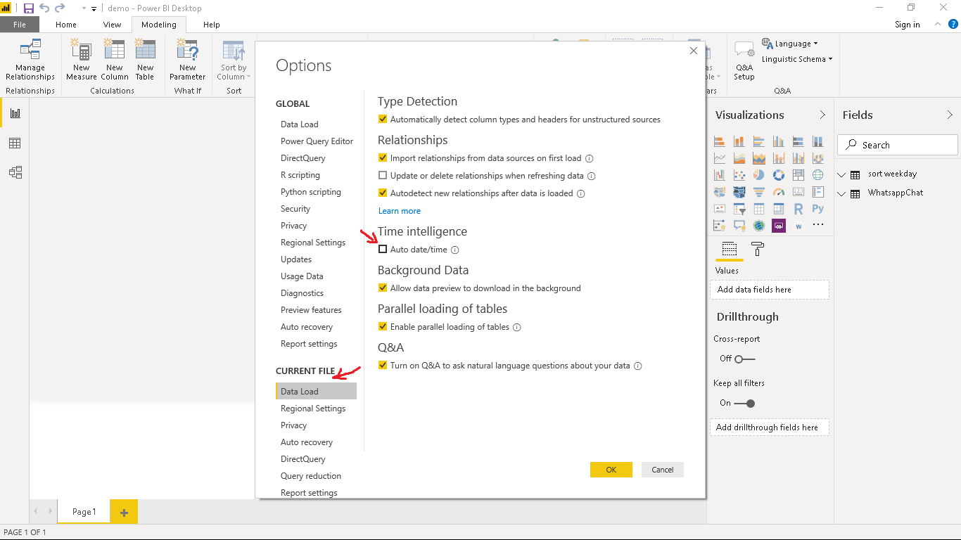 In the Options window, go to Current File and select Data Load. Turn off Auto Date/Time and select OK.