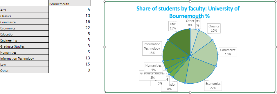 The aim of this visual is to compare the number of students in each university across all faculties.