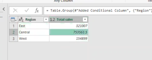 This is basically like a summary function in power query, it is similar to what happen when a pivot table is created in excel. This feature has the “basic” which is used for grouping by a single column and “advanced” which is used for grouping by multiple columns