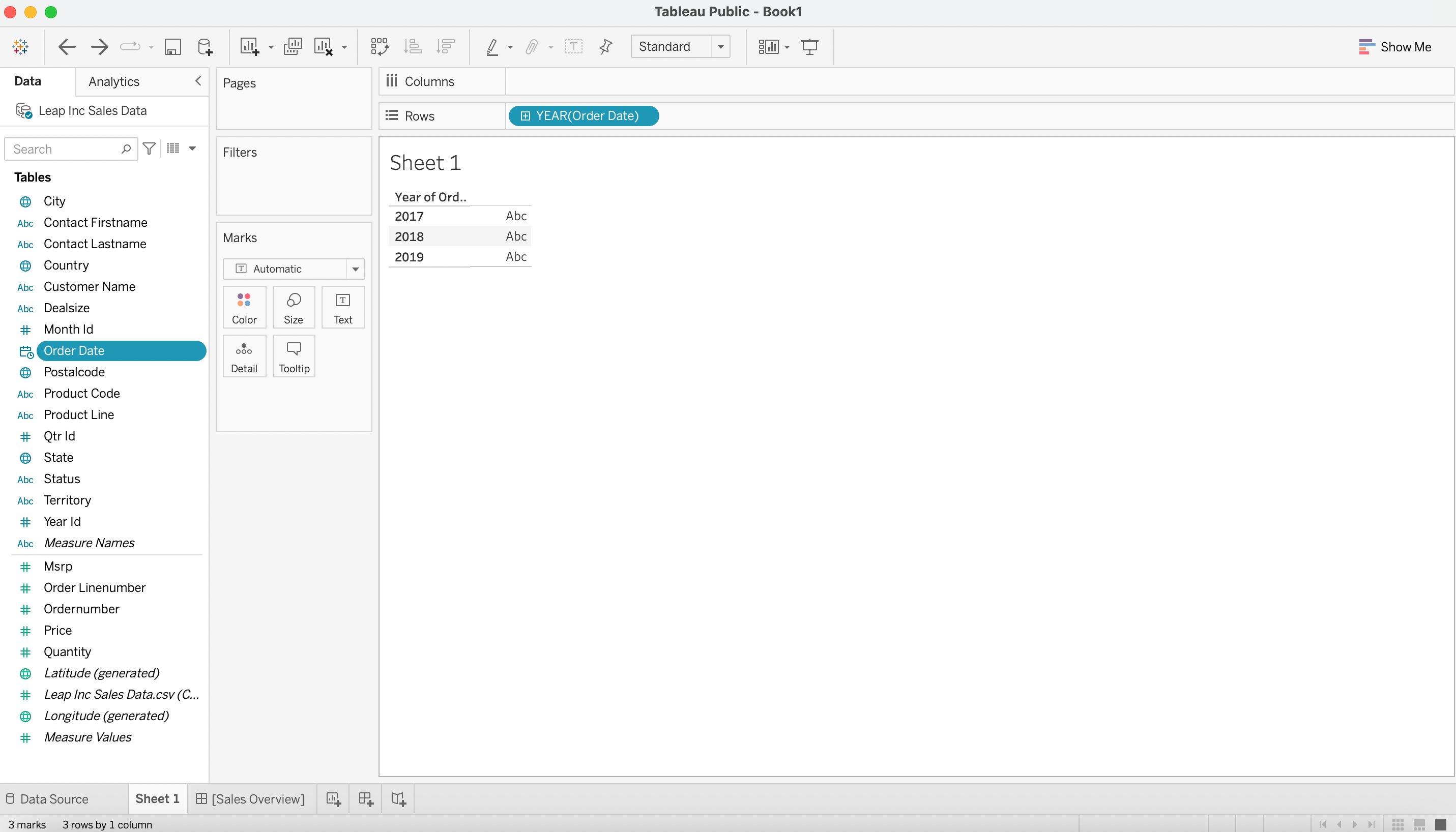 Order Date to the row, it will display as year and we will like to analyze by month across 2017 to 2019