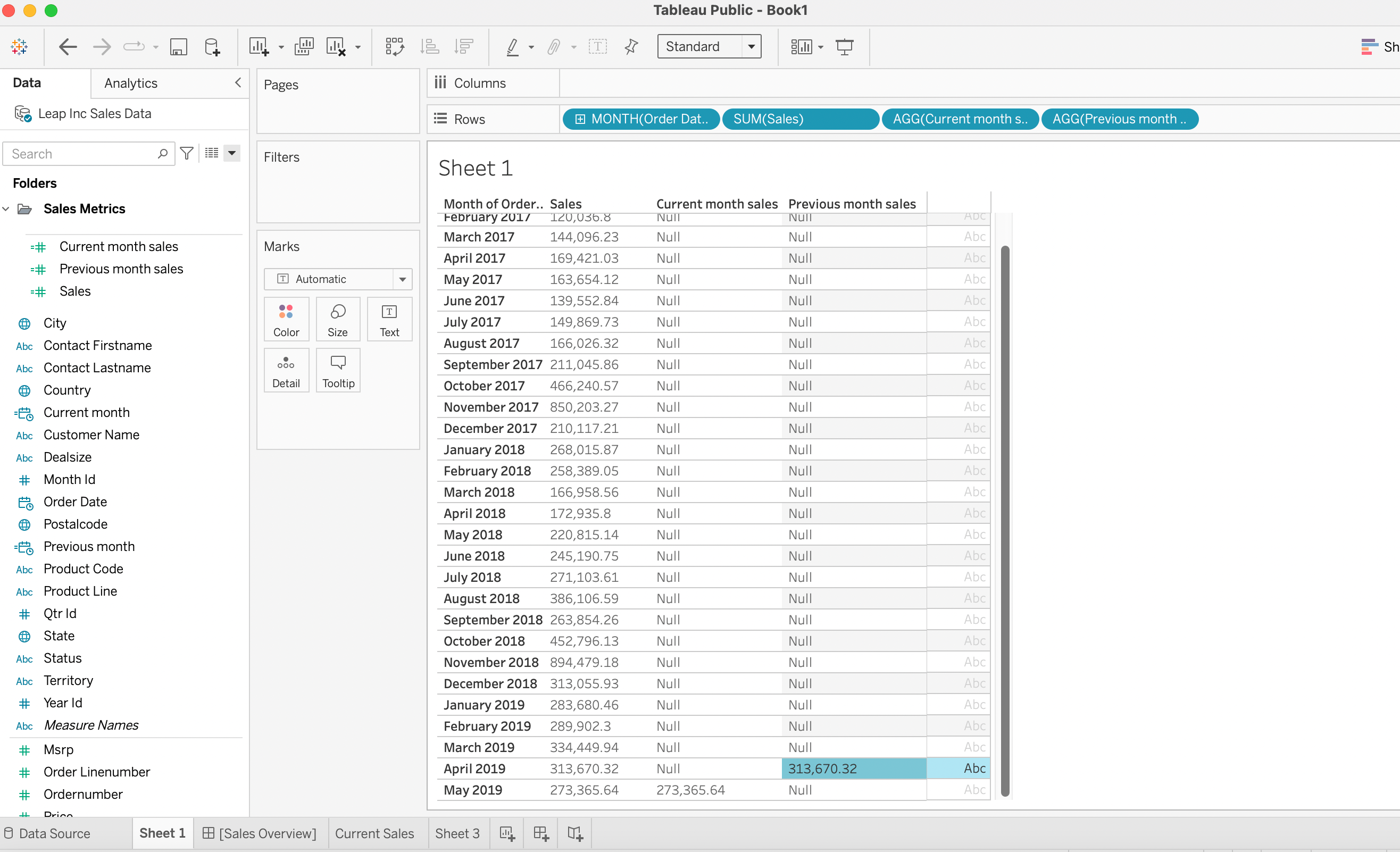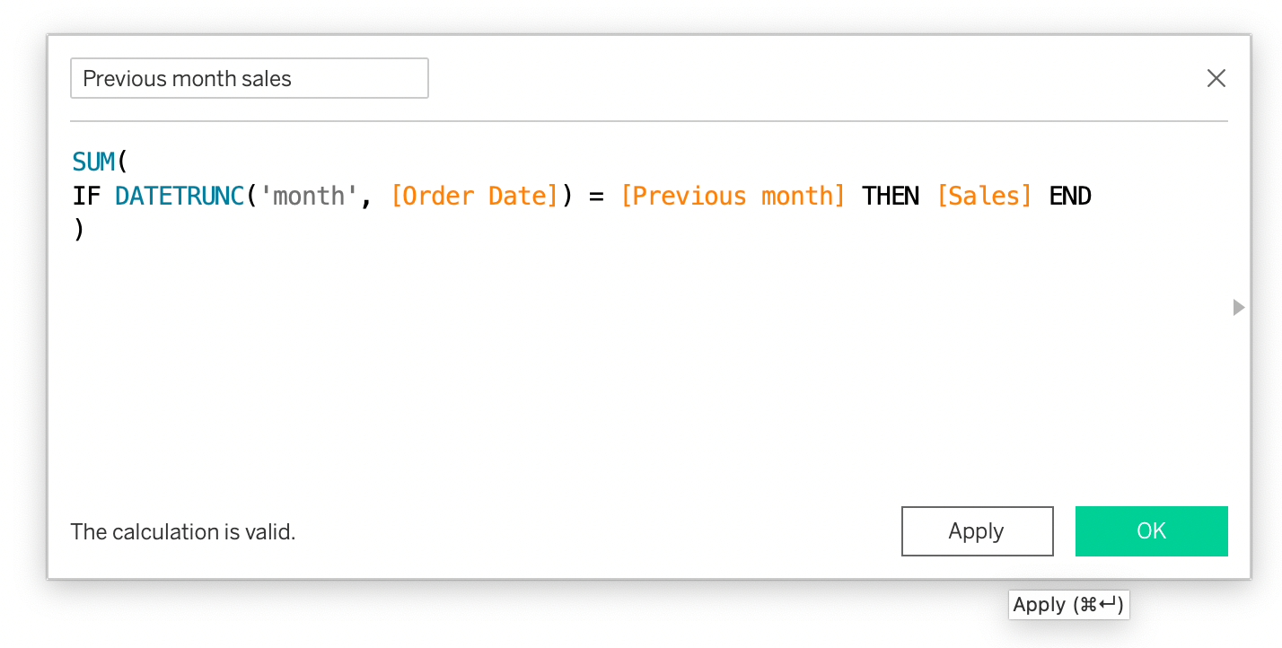 2. Duplicate current month sales and rename and edit to previous month sales to create the sales values. The interpretation is simply sum the sales amount if the month of the order date is equal to the previous month.