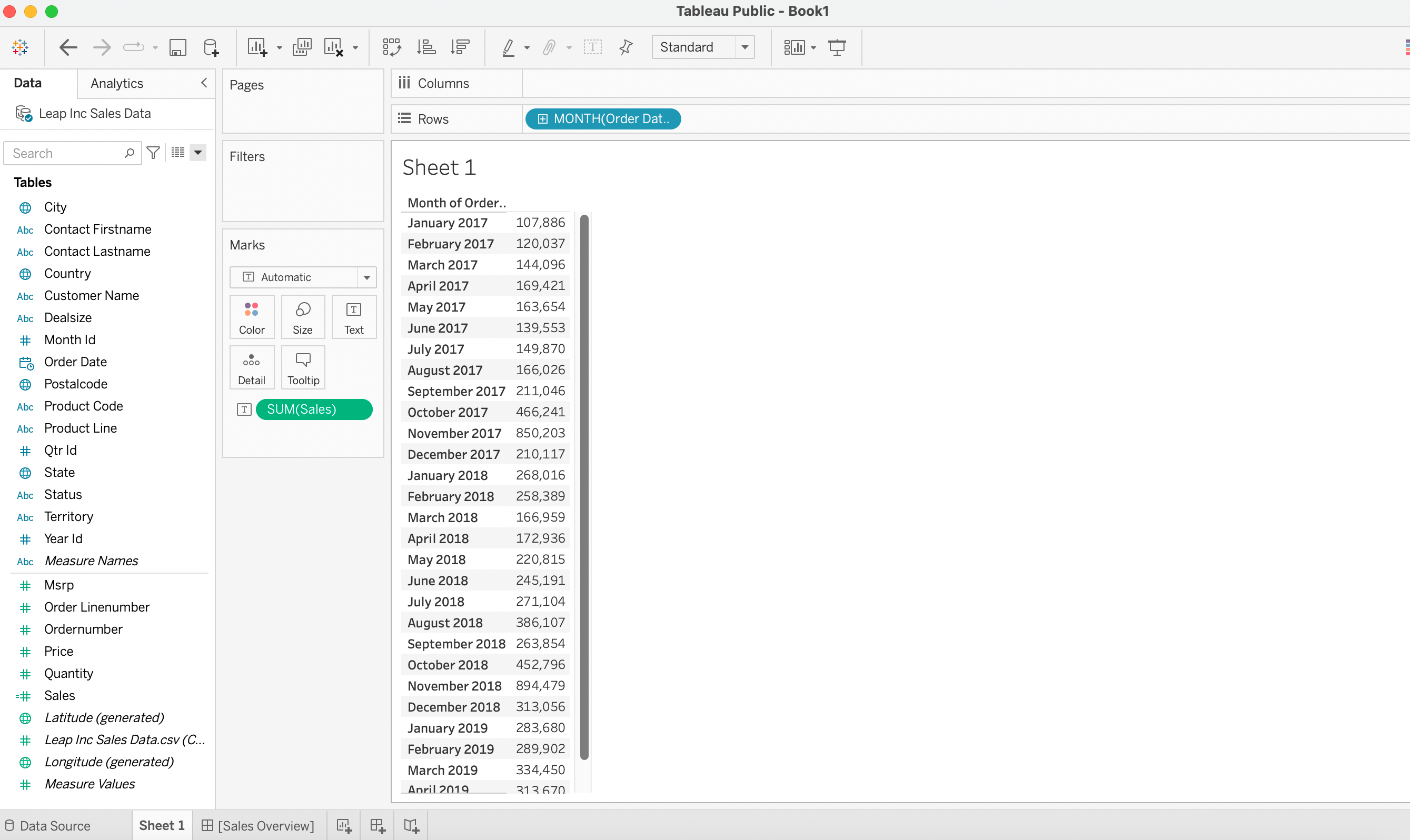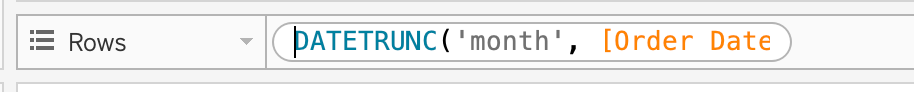 current month using the DATETRUNC function which helped to convert the year to month from order date. you can get this my double clicking on the month feature in the row field.Note: DATETRUNC : This function truncates the specified date to the accuracy specified in the date_part.