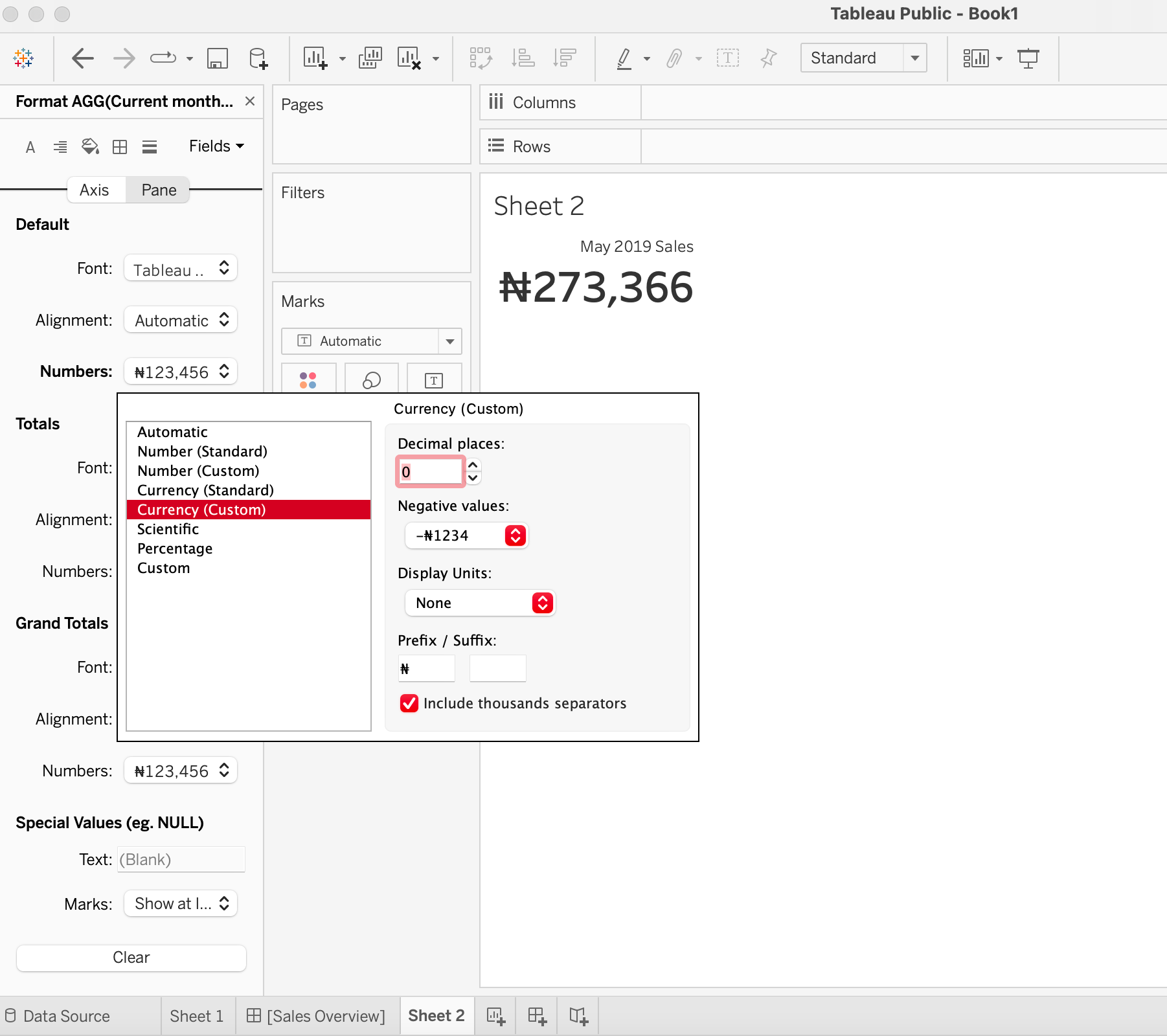 4. Then remove the decimal point in the current month sales by reducing the decimal point from 2 to 0
