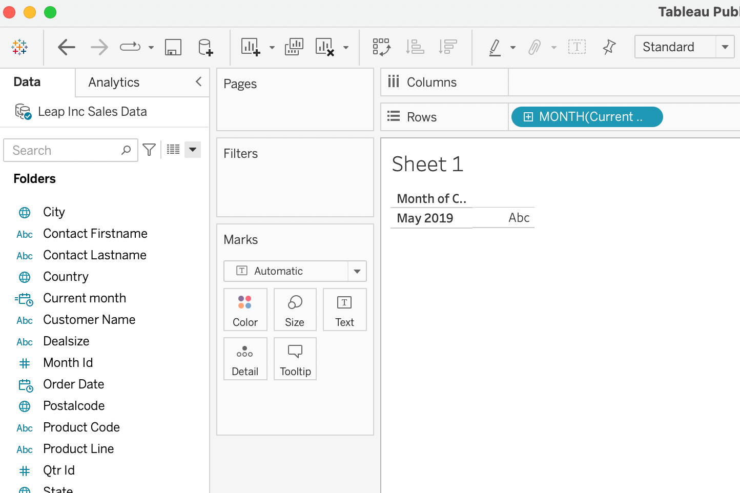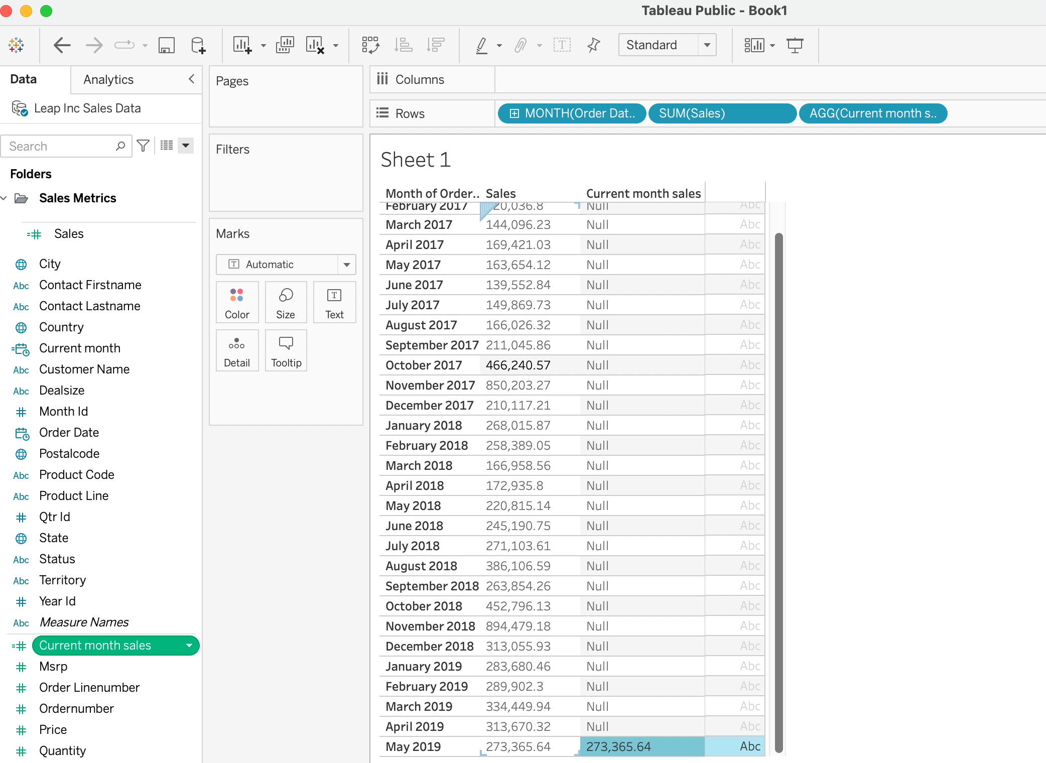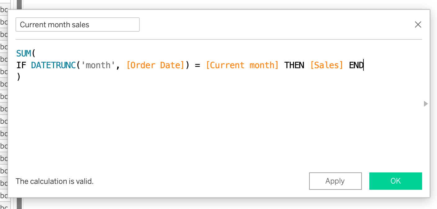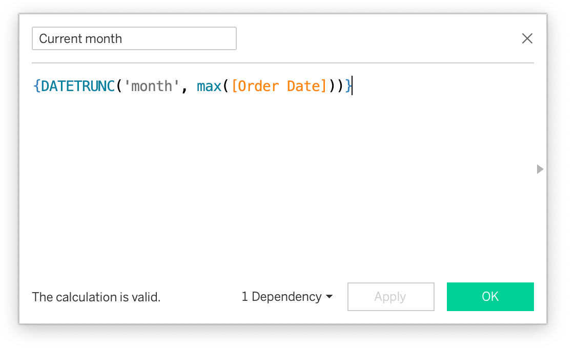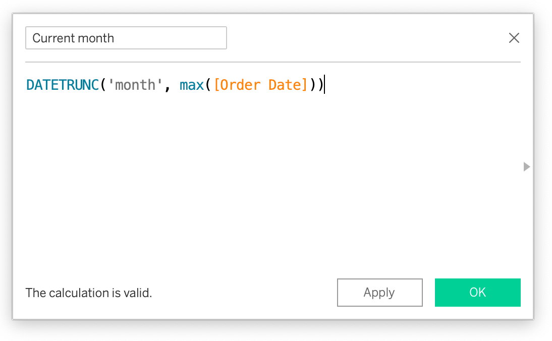 current month using max([Order Date]) in the copied formulae above to create the calculated field for current month
