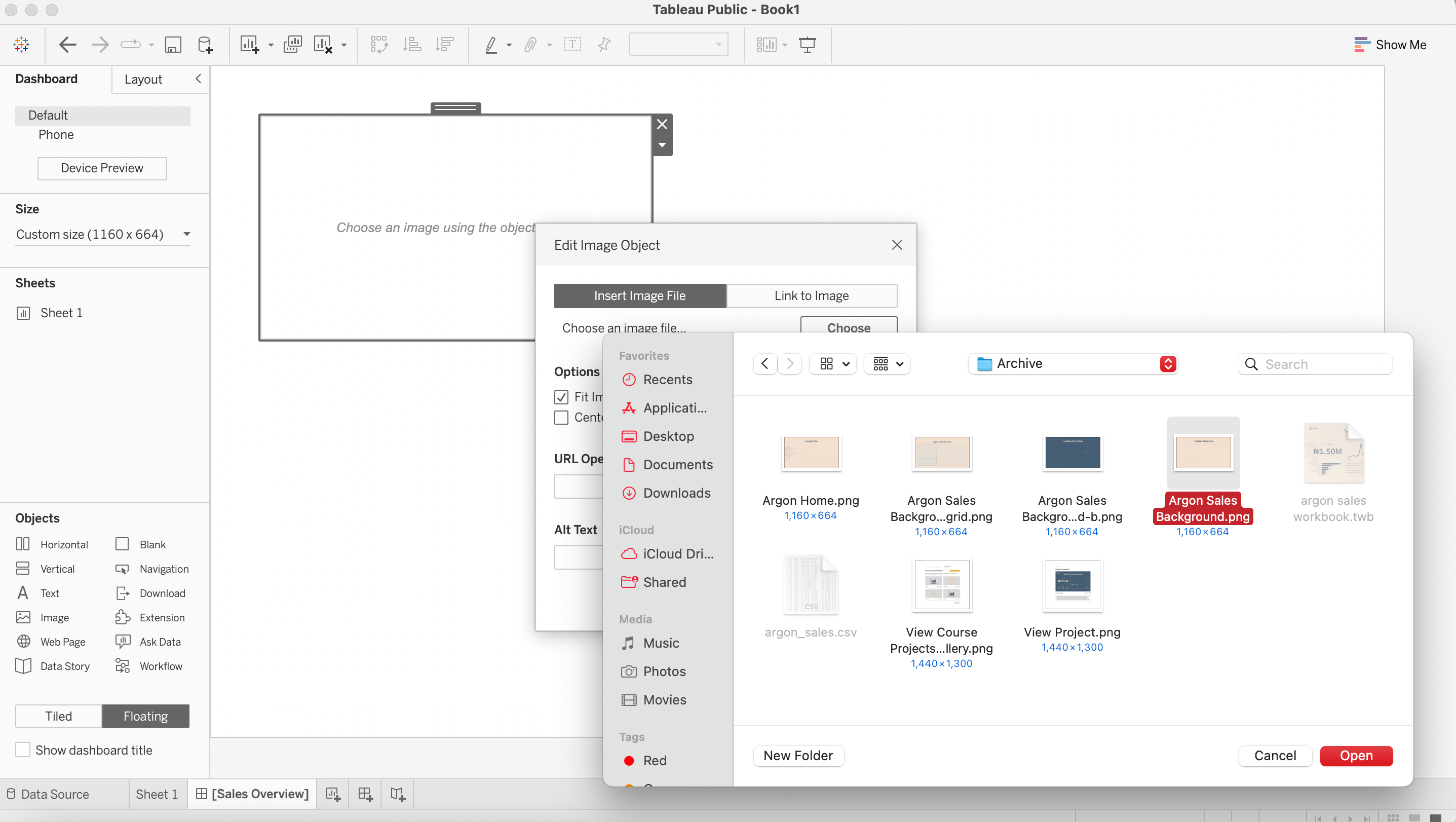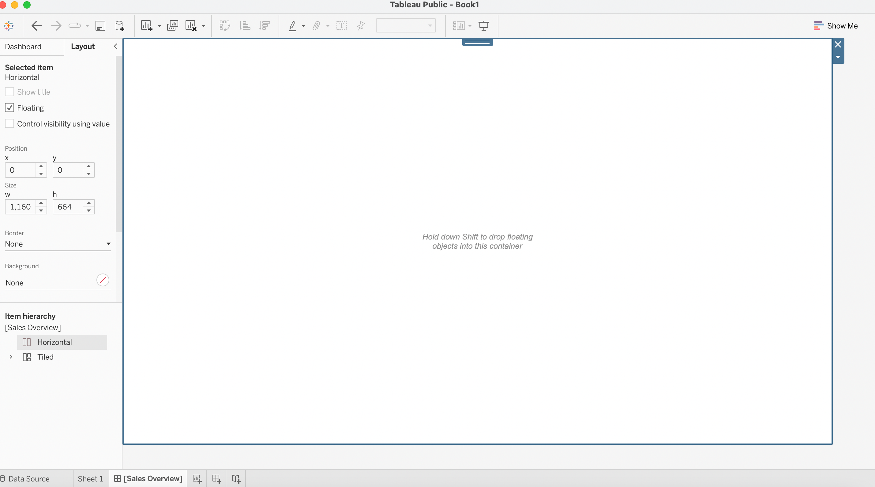 5. Create a container of same size as the Figma Background and import it into Tableau