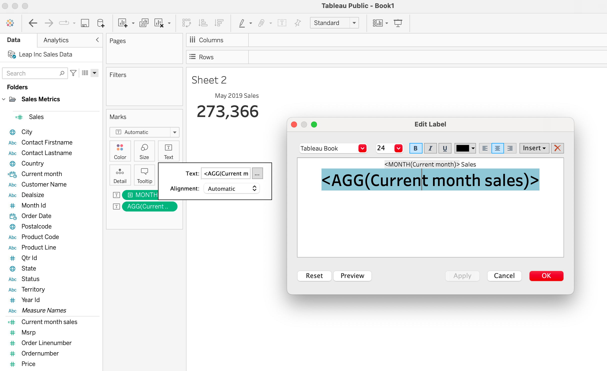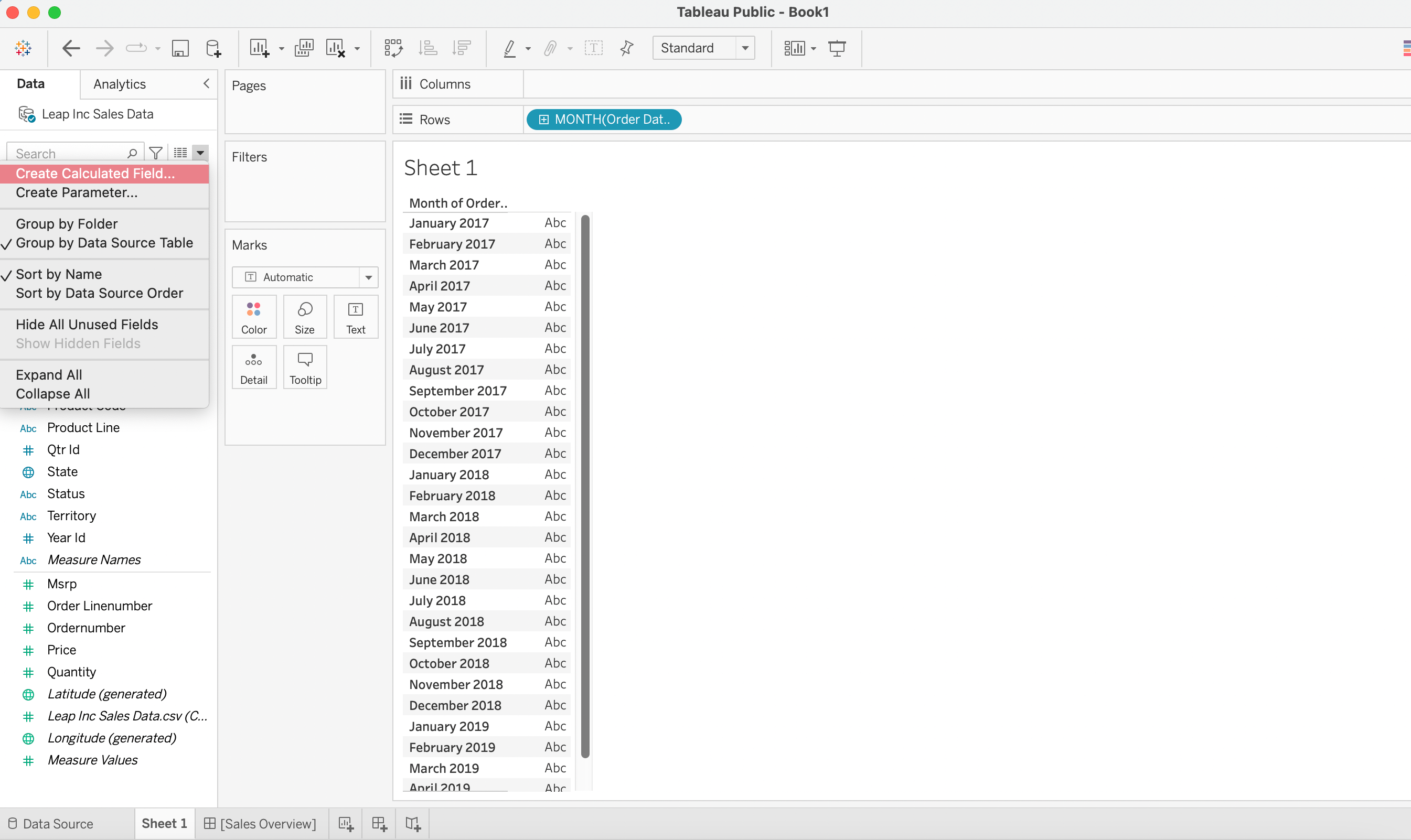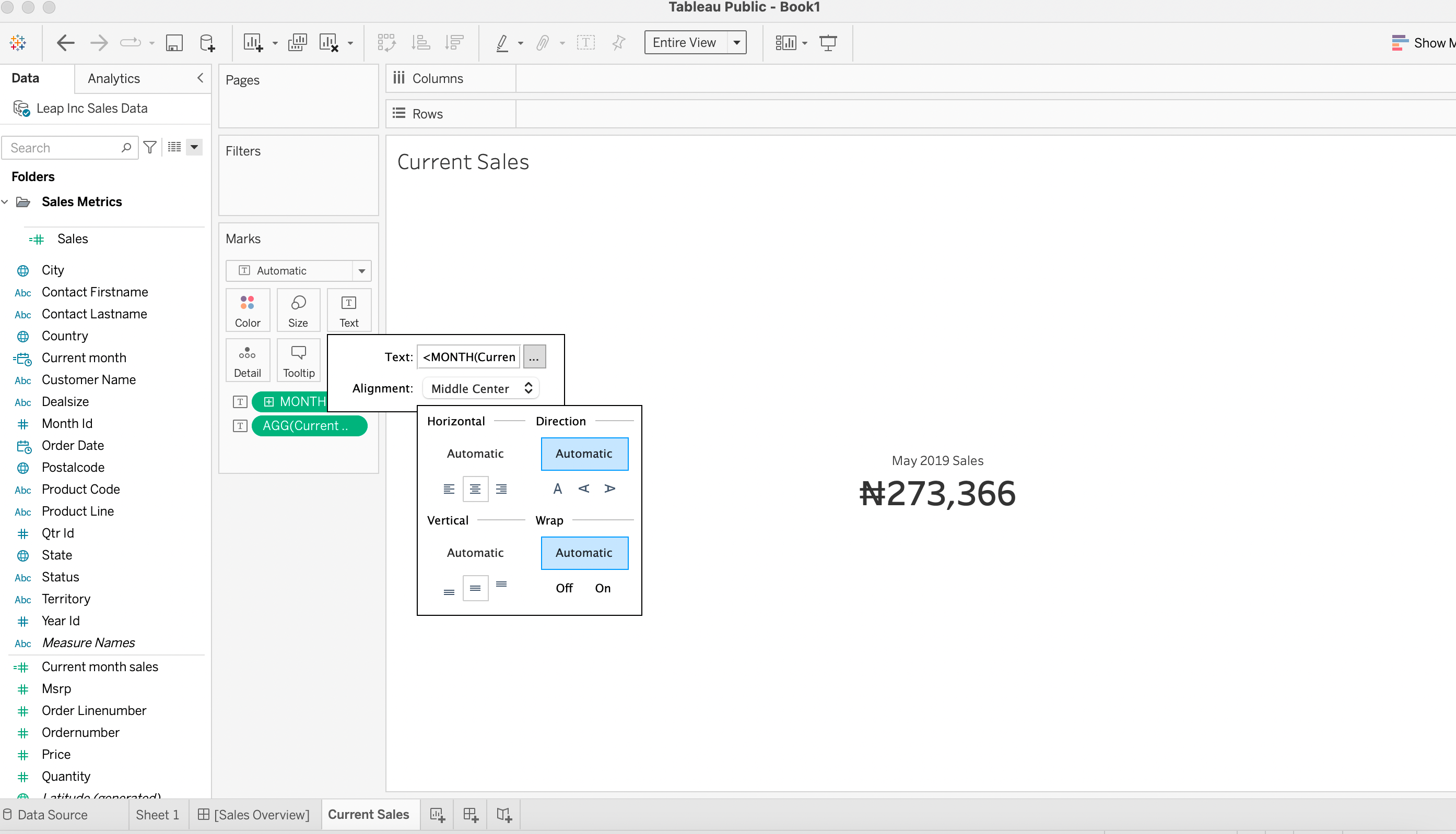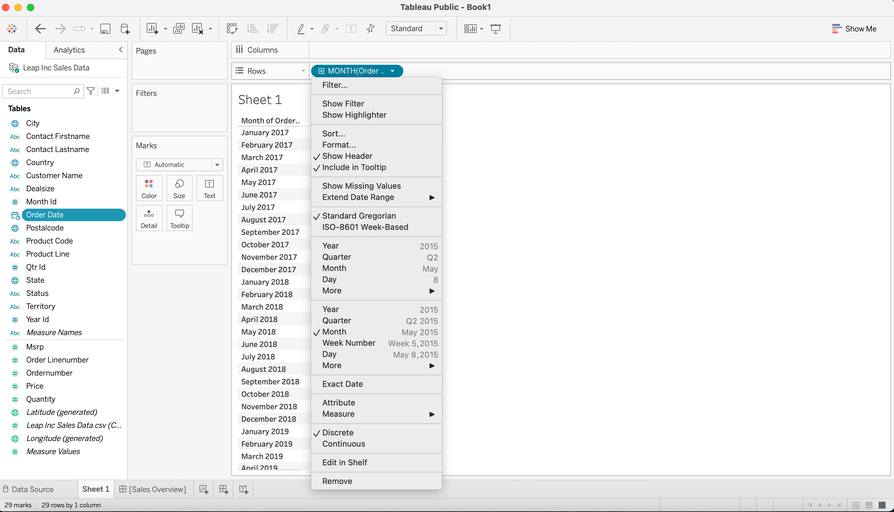 3. Drop the created field for previous month sales and change to discrete from continuous